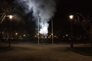 Após a leitura do testamento, o carrasco acompanha o Rei até à Praça da Liberdade, onde irá decorrer a queima do entrudo. O boneco é incendiado, rebentando o material pirotécnico no seu interior, fazendo ecoar sucessivos e barulhentos estrondos até à sua destruição total pelo fogo. O momento termina com fogo de artifício.